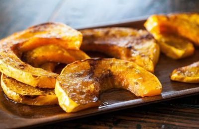 - Aboqueu la massa preparada sobre les tires de plàtan. Poseu la safata en un forn preescalfat a 185 °C. 0 forn durant 50-55 minuts.